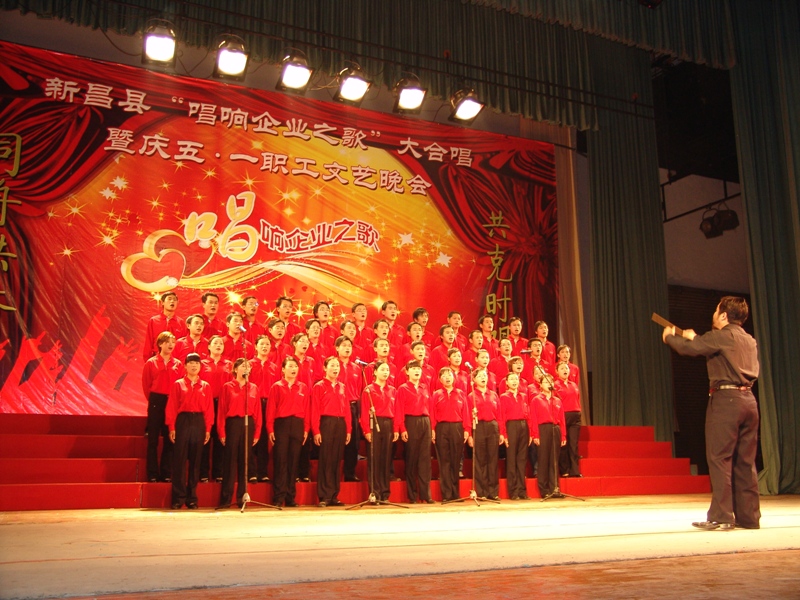 4月27日晚,,,,,,,由新昌县总工会组织的唱响“企业之歌大合唱暨庆五·一职工文艺晚会”在县文化中心举行。。。。。。。文艺晚会前表扬在08年岁情中涌现出来的一批爱岗敬业、勇克时艰,,,,,,,为“保增添、抓转型、促稳固”作出孝顺的先进人物,,,,,,,药品销售公司潘汉清被授予“新昌县勇克时艰优异职工”称呼;;;;;;;药品制造公司装备科金明山提出的《药品装备综合刷新》合理化建议荣获2008年十佳节能减排金点子奖,,,,,,,同时荣获新昌县手艺立异能手称呼。。。。。。。县向导罗国安、潘岳梦、冯军出席晚会并为先进事情者颁奖。。。。。。。