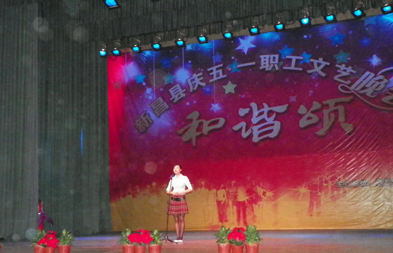4月28日晚7点,,,,,,由县总工会举行的新昌县“协调颂”庆五一职工文艺晚会暨表扬大会在县文化中心盛大举行。。。。。。县向导潘岳梦、严钢出席晚会,,,,,,包括我公司在内的县内十多个大型企业加入了文艺演出,,,,,,精彩的演出为劳动者的节日带来了欢喜。。。。。。我公司选送的节目诗朗诵《走进bet365亚洲唯一官网》,,,,,,由研究一所王艳丽演出,,,,,,她以新进职工的角度抒发了对公司的热爱之情。。。。。。