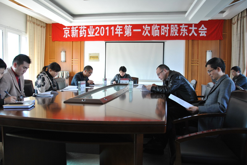 11月24日, ,,,,,,,公司在行政楼三楼聚会室召开2011年第一次暂时股东大会 。。。。。。。受公司董事长委托, ,,,,,,,公司副董事长陈漂亮女士主持聚会, ,,,,,,,4名股东及股东授权代表加入了现场聚会, ,,,,,,,5名股东加入了网络投票, ,,,,,,,公司部分董事, ,,,,,,,高管、监事、锦天城状师列席了聚会 。。。。。。。