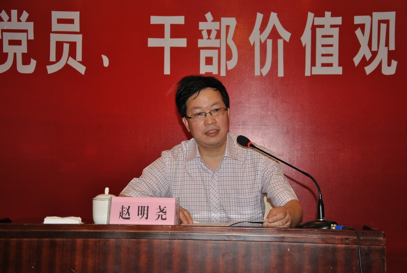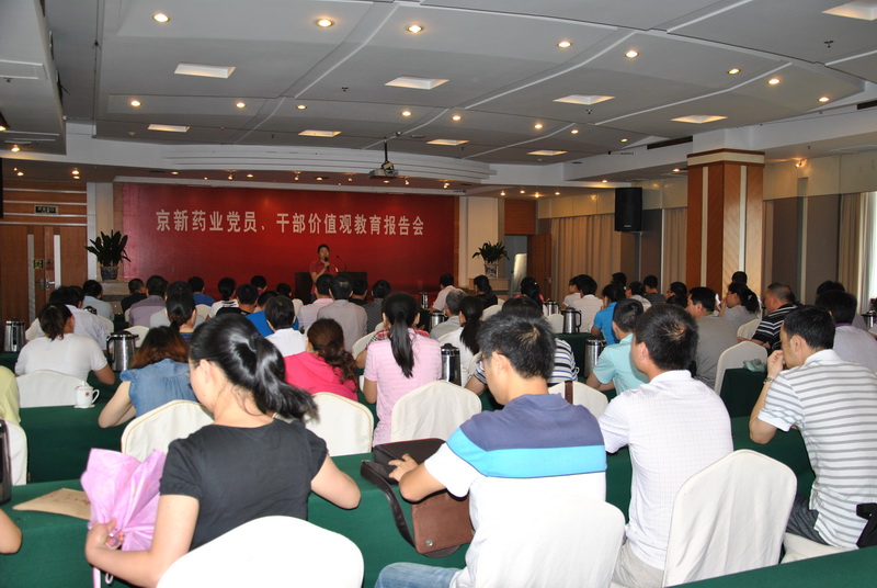 6月17日,,,,,,,,公司党委在鹤群大旅馆八楼天姥厅组织了一次主题为“党员、干部价值观教育”报告会。。。。。报告由县直机关党工委书记赵明尧主讲。。。。。公司新昌基地全体党员和中高层管理干部近70人加入了报告会。。。。。