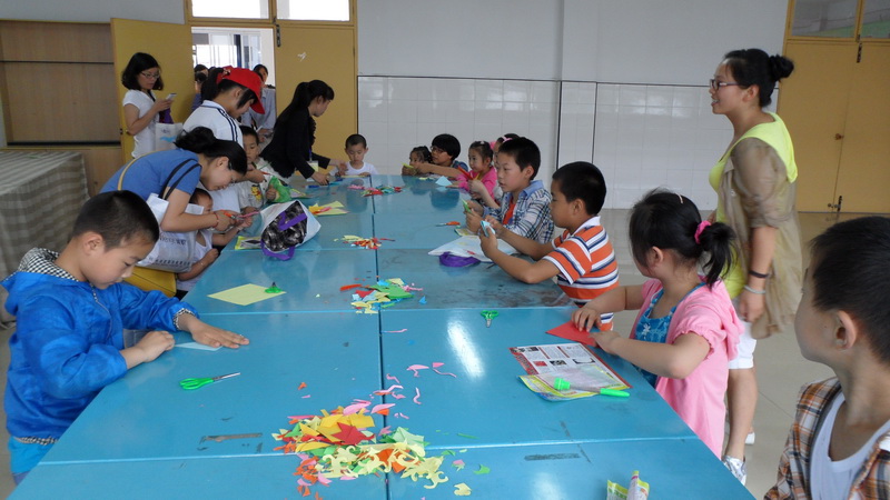 虽然天公不作美 ,,,,,,,,下了一整天的大雨 ,,,,,,,,但丝毫没有阻挡小朋侪们加入运动的热情 ,,,,,,,,由于加入职员较多 ,,,,,,,,许多运动室前排起了长长的步队龙。 。。。。意见意义剪纸、七彩风车、元祖体验、创意软陶等需要小朋侪们自己下手创作的运动项目不但充分验展了他们的想象力 ,,,,,,,,并且也让他们从中体会到了下手的兴趣。 。。。。在亲亲大脚板、心有灵犀、袋鼠赛跑等亲子游戏中 ,,,,,,,,展现的则是一派配合默契、你追我赶、其喜洋洋的热闹情形。 。。。。天文科普、禁毒教育体验、科技探梦等运动让小朋侪们在加入运动的同时又增添了科普和清静知识。 。。。。